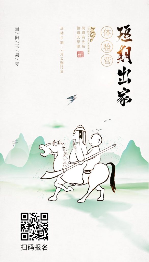 湖北当阳玉泉寺2021年七月短期出家开始报名 编辑:泷中 • 2021年6月20日 上午12:13 • 法讯 来源:当阳玉泉寺 2021-06-19 扫码报名 湖北当阳玉泉寺2021年七月短期出家开始报名 本网站属于非赢利性网站,转载的文章遵循原作者的版权声明,如有版权异议,请联系值班编辑予以删除。 联系方式:0591-83056739-818 18950442781 赞 (2) 编辑:泷中 0 0 生成海报 五台山普化禅寺2021辛丑年第三堂水陆法会正式开启 上一篇 2021年6月20日 上午12:09 当阳玉泉寺华严法会通启 下一篇 2021年6月20日 上午12:21 相关推荐 法讯 禅修丨上海玉佛禅寺2021年7月“一日禅”招募 400 编辑:泷中 2021年7月6日 法讯 禅修丨安徽灵应禅院2021年周末禅报名 000 编辑:泷中 2021年9月26日 法讯 禅修丨安徽省广德市灵应禅院2021年7月23日-7月25日报名 200 编辑:泷中 2021年7月13日 法讯 短期出家丨东台弥陀寺8月21-27日举办短期出家 400 编辑:泷中 2021年7月5日 法讯 内观丨浙江宁波隆波田内观2021年暑期课程讯息 500 编辑:泷中 2021年7月5日 法讯 法讯|石狮龙海寺首届“海潮音”禅修班招生简章 000 smy 2023年5月16日 法讯 坏佛像,破旧佛教经书,抄经本等寄送地址 1200 编辑:泷中 2021年7月13日 法讯 观世丨武汉归元寺观世音菩萨成道日祝圣法会通启 400 编辑:泷中 2021年7月20日 法讯 禅七丨重庆华岩寺2021年国庆精进禅七通启 000 编辑:泷中 2021年8月26日 法讯 佛忏丨文昌宏光寺启建三千佛忏法会通启 100 编辑:泷中 2021年8月25日 发表回复 您的邮箱地址不会被公开。 必填项已用 * 标注*昵称: *邮箱: 网址: 记住昵称、邮箱和网址,下次评论免输入 提交