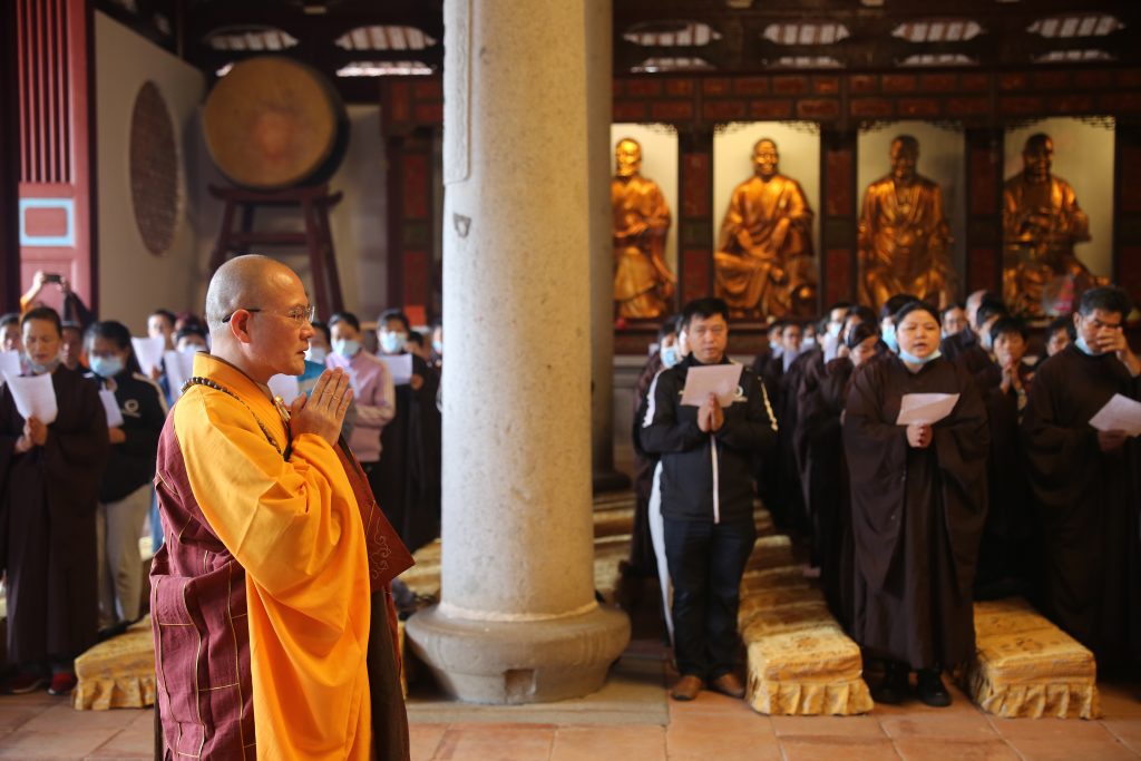 2021年10月24日,农历九月十九上午,欣逢观世音菩萨出家纪念日,在寺院常住的安排下,南山广化寺于大雄宝殿为一批虔诚信众庄严举行传授三皈依法会。广化寺方丈本性法师主法,传授三皈。僧俗同祈:国泰民安,风调雨顺,山门清净,海众安和。