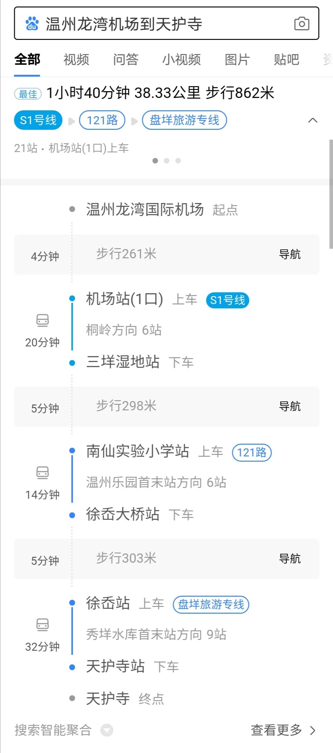 龙湾国际机场:①乘坐轨道交通S1号线,到三垟湿地站(1口出),②步行300米至南仙实验小学乘坐121路(或B301路),到徐岙大桥站下车,③步行300米至徐岙站上车乘坐盘垟旅游专线,到天护寺站下车。