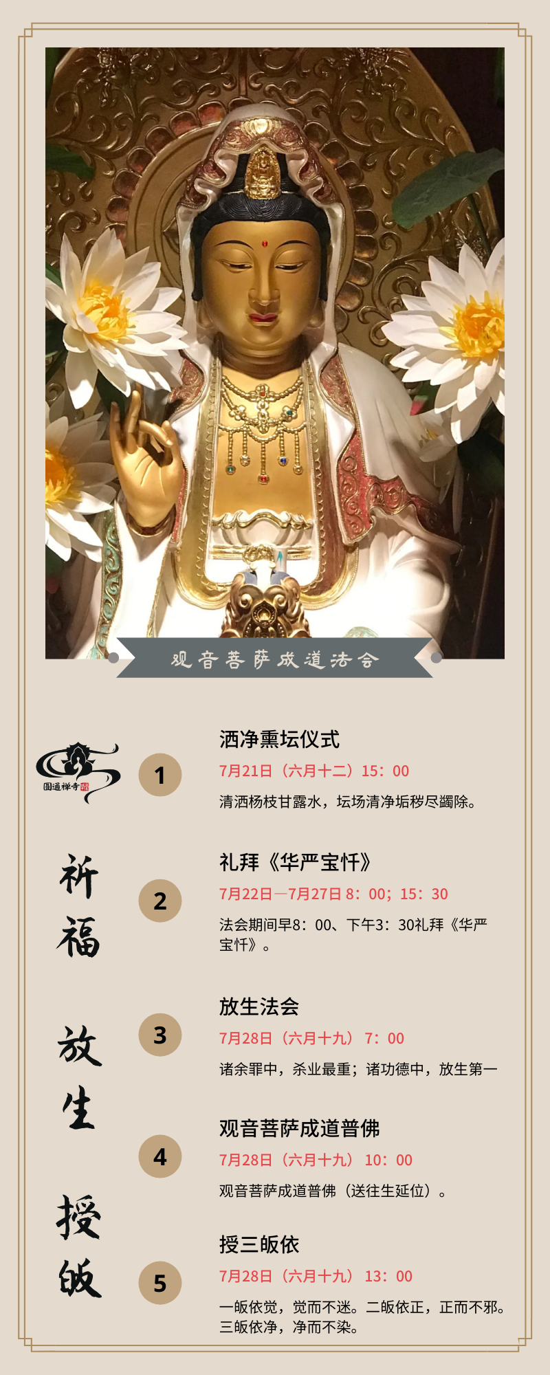 圆通禅寺作为观音道场以此“观音菩萨成道”法会之功德回向十方施主檀越虔诚信众,护法居士
