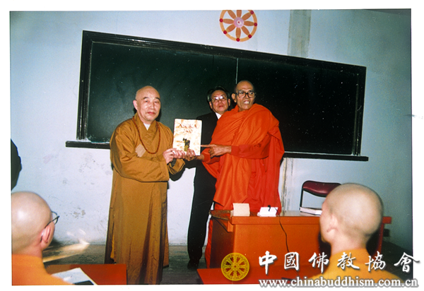 ▲(传印长老在中国佛学院任教期间,为学僧教授戒律学、印度学等课程)