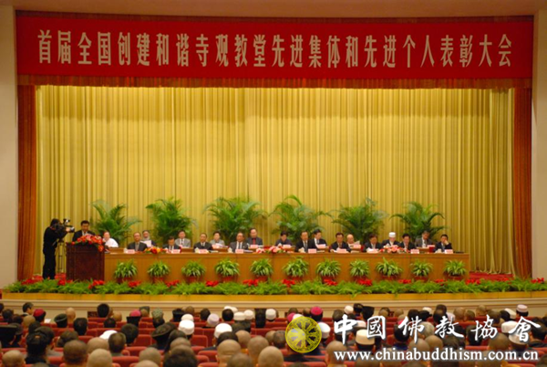 ▲(2010年12月29日,首届全国创建和谐寺观教堂先进集体和先进个人表彰大会在京召开,中国佛教协会会长传印长老出席大会)