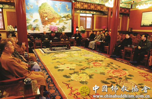 ▲(2013年4月12日,中国佛教协会在北京广济寺举行“教风年”和谐寺院创建活动座谈会,传印会长在座谈会上讲话)