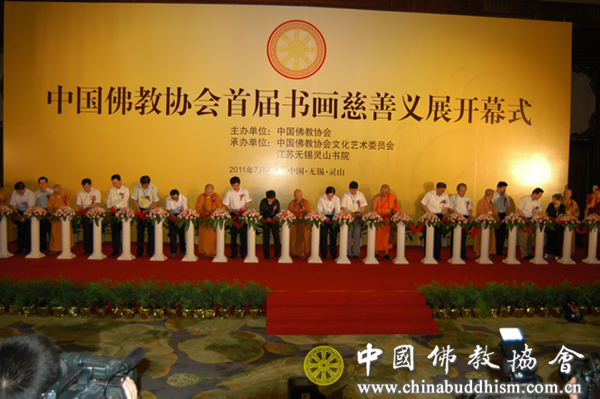 ▲(2011年7月27日,中国佛教协会首届书画慈善义展开幕式在无锡举行,传印会长出席并致辞)