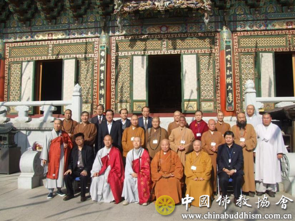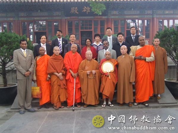 ▲(2010年10月9日,传印会长在北京广济寺会见了斯里兰卡阿斯羯利派大导师乌都伽玛长老一行)