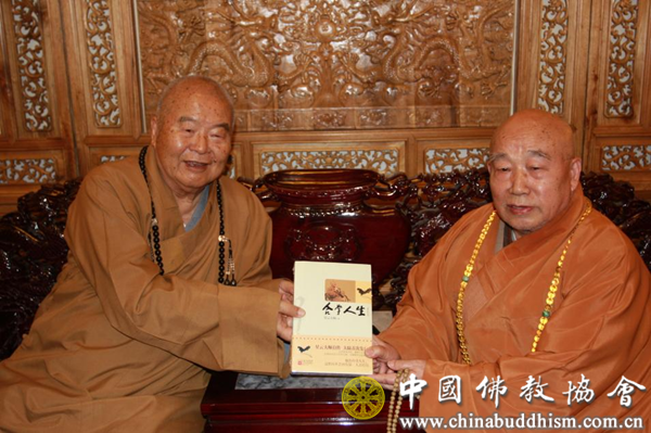 ▲(2011年3月31日,传印会长在北京法源寺会见台湾佛光山开山宗长星云长老一行)