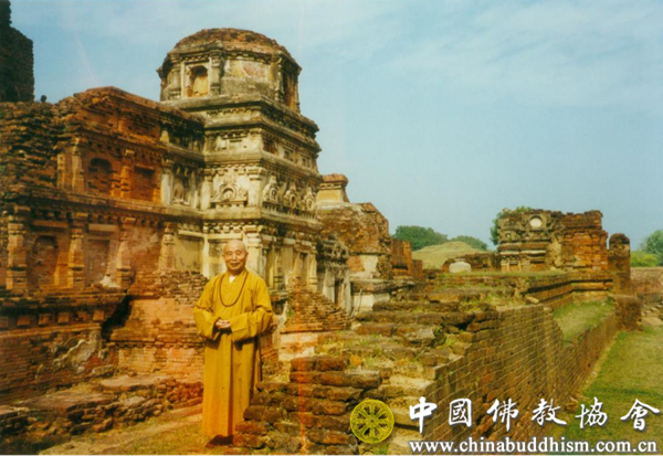 ▲(1997年,传印长老朝拜佛教圣地——那烂陀寺遗址)