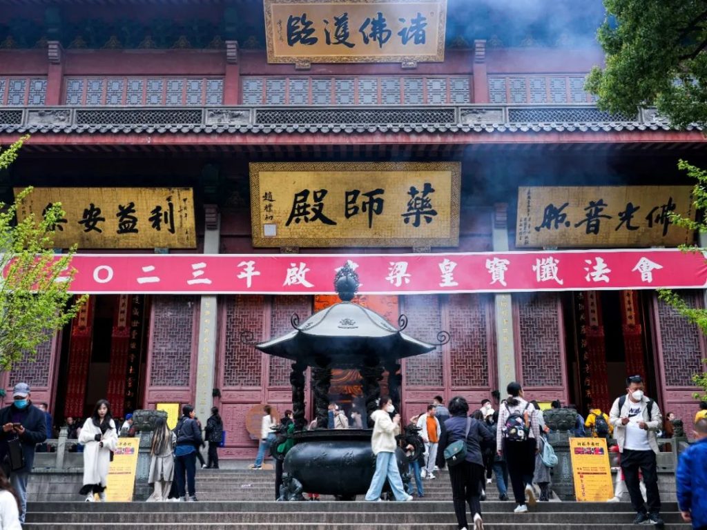 2023年3月29日(癸卯年农历闰二月初八),杭州灵隐寺清明梁皇法会正式开始。上午八时,灵隐寺药师殿梵呗声起,常住两序大众在药师琉璃光如来圣像前云集,主法法师拈香洒净,与会大众次序排班,齐声唱赞,现场肃穆庄严,梵呗婉转悲切。