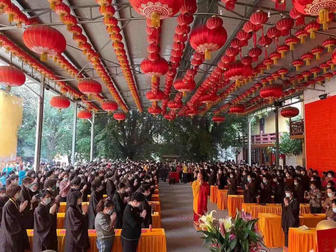 三千佛忏法会缘起,是开元寺为迎接观世音菩萨成道纪念日而得起建,是为众生清净三业,庆祝菩萨成道诞辰。三千佛法会,亦名三千佛忏法会,或三千佛洪名宝忏。是以礼拜过去、现在、未来三千佛的法会,而重点则在于“忏”。我们现在的众生,如何能得消灾平安,唯有将过去的业因消除或不现,今又不作新殃,而忏的意义即在于此。如《六祖坛经》中:“忏者,忏其前愆;悔者,悔其后过。”如是旧因不现,新业不起,方可消灾、平安。