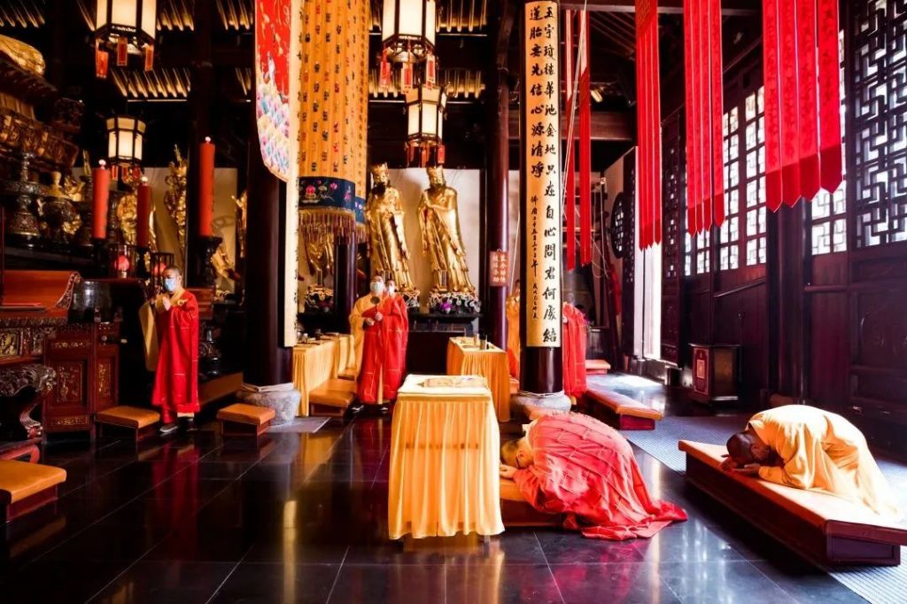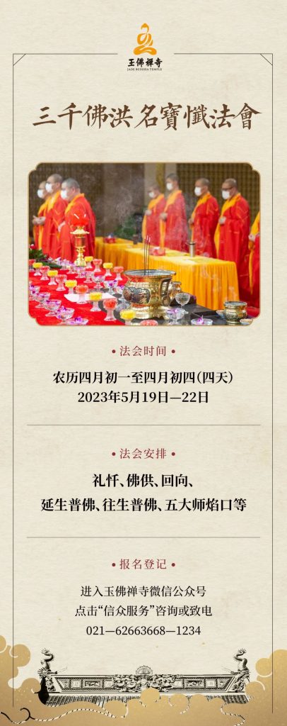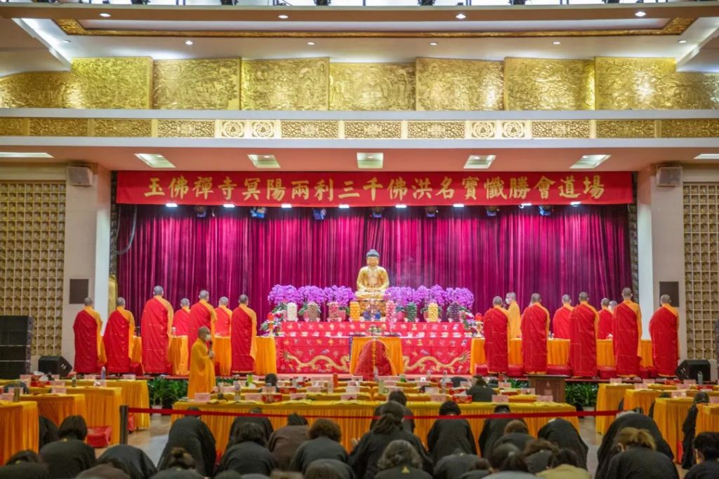 而三千佛忏便是指参会者在四日法会期间,随法师念诵过去、现在、未来三千佛名,每念一声,叩拜一次,就是在诸佛的见证下,坦诚所作罪业,并决心改正。