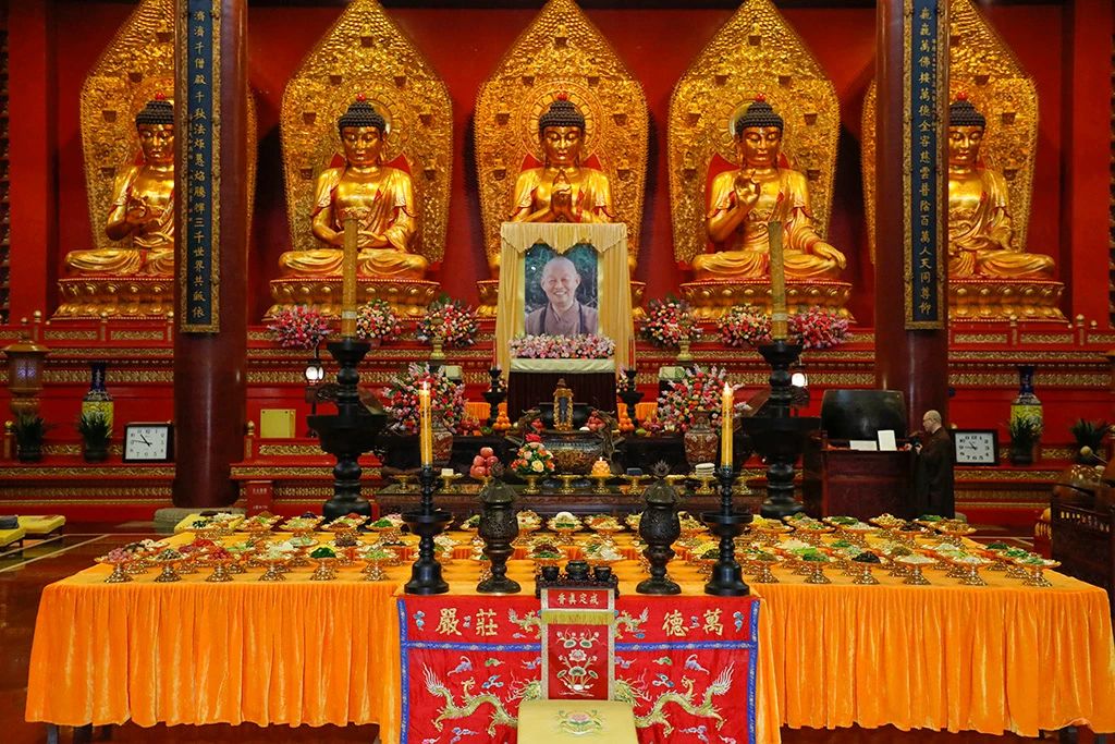 传供圆满,大众齐唱赞偈:“宗门狮子,游戏人间,拈花劫火生活禅,笑掷须弥山,五脉一肩,万德颂庄严。南无度人师菩萨摩诃萨!”表达对净慧长老起衰继绝、建寺安僧,倡生活禅风、施弥天法雨的感佩与赞叹,并回向宗门振兴、龙象腾骧、佛日增辉、法轮常转,祈愿长老不舍众生、乘愿再来!