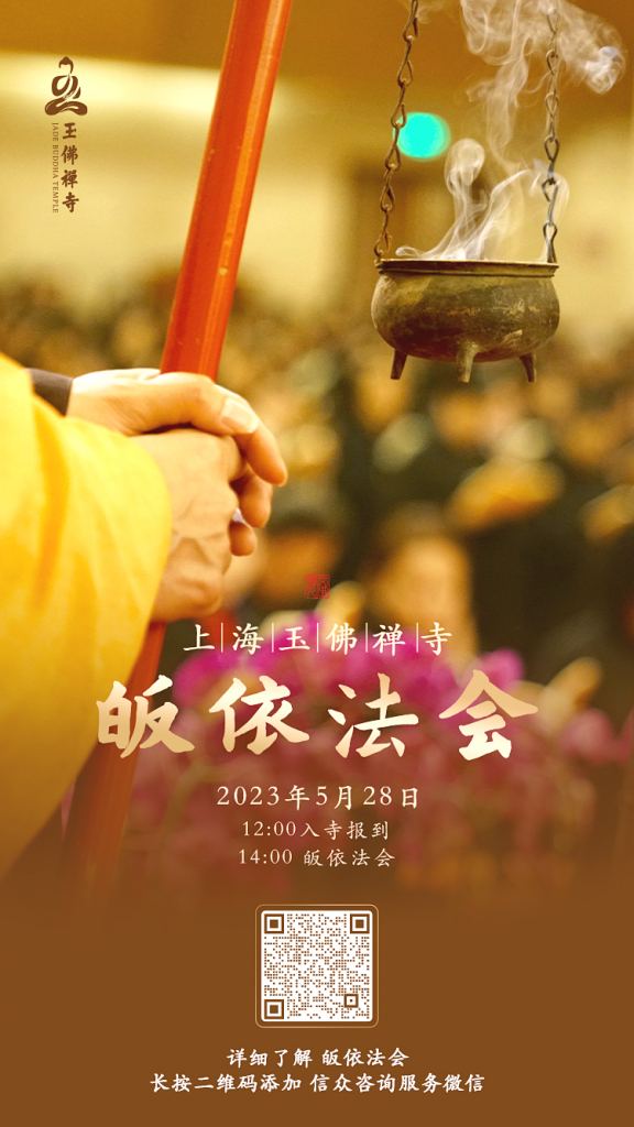 上海玉佛禅寺谨定于2023年5月28日举行皈依法会,恭请中国佛教协会副会长、上海玉佛禅寺方丈觉醒大和尚,慈悲接纳十方善信,为众亲授三皈依。