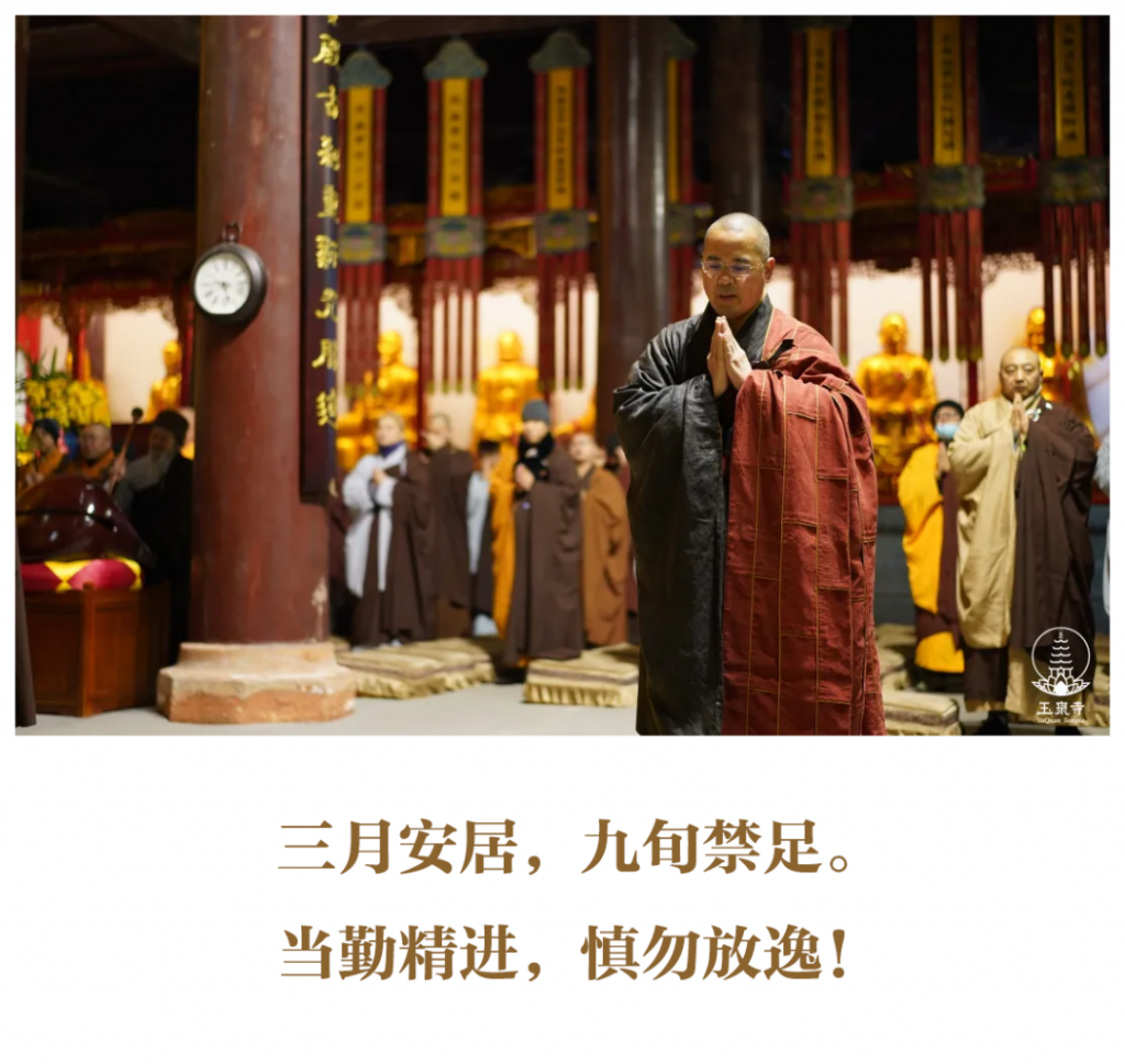 僧団界内众比丘僧依玉泉寺大界,进行前三月,夏安居。
