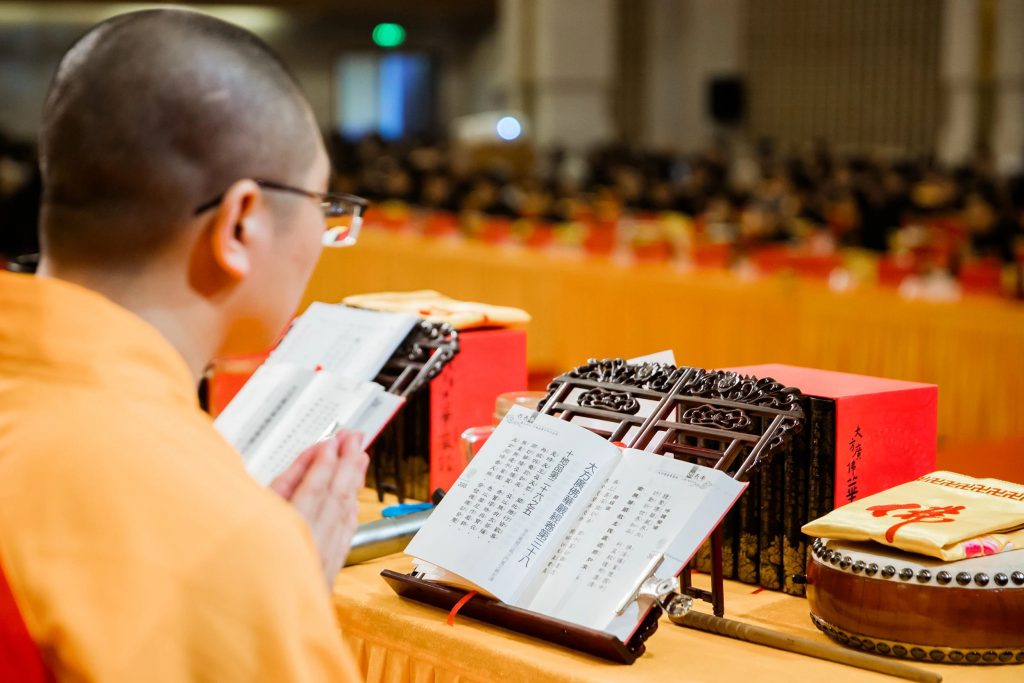 法会期间,除了诵读经文,更有法师每日唱诵包含华严密意的“华严字母”。