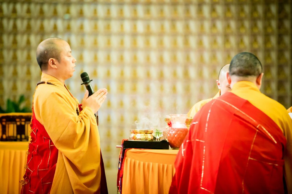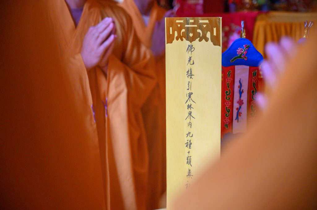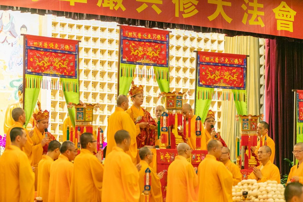 故于法会圆满前夕,设“五大师瑜伽焰口法会”,召请恶道众生,为其施甘露水、予妙饮食,并为其授三皈依及净戒,令其早离苦难。
