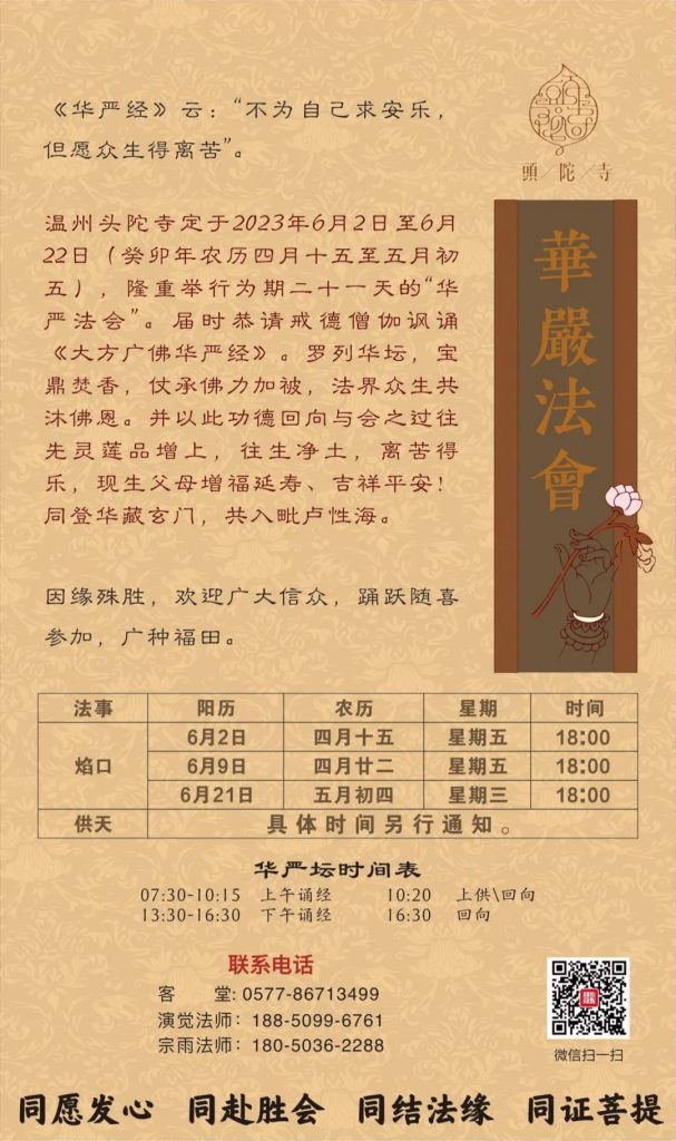 2023年6月2日(农历四月十五日),头陀寺隆重举行华严法会。护法居士数百人齐聚坛场,参加净坛仪式,本次华严法会将持续至6月22日(农历五月初五)。