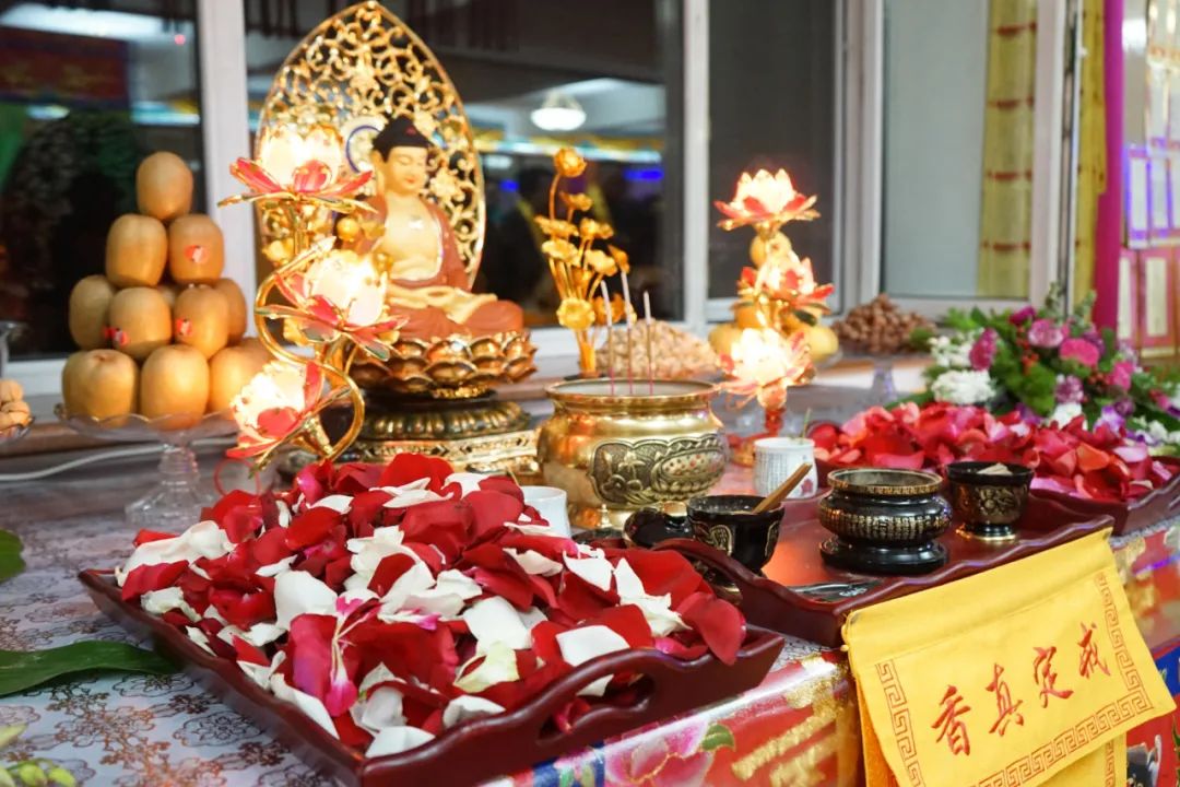 4、供上堂:功德主向奉请至内坛十席诸佛菩萨圣贤敬献六尘妙供,以表虔诚之心。