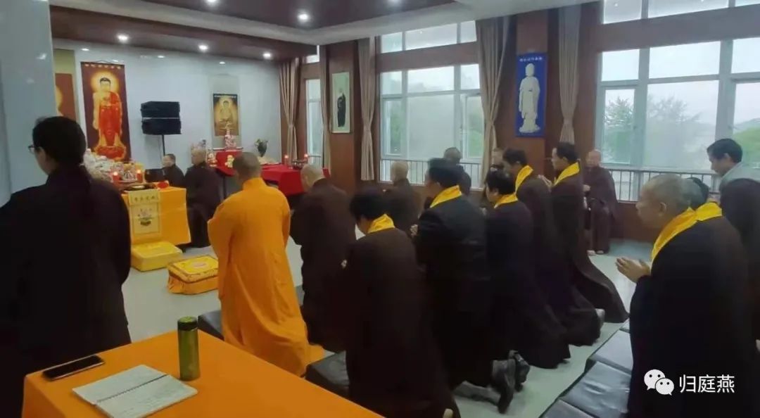 三、期内宜谢绝迎送。相看尊客,恐难却者,道语数句,回堂念佛。
