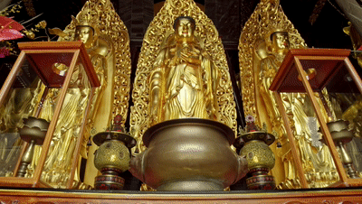 佛门在家弟子,若参访善知识,将入三宝大殿之际,大殿若三个门,不得从大门而入,应从两侧小门而入;从大门而入,对三宝大失不敬,我慢功高,亏损自德。若无三个门,只有一个门,就由此门而入。
