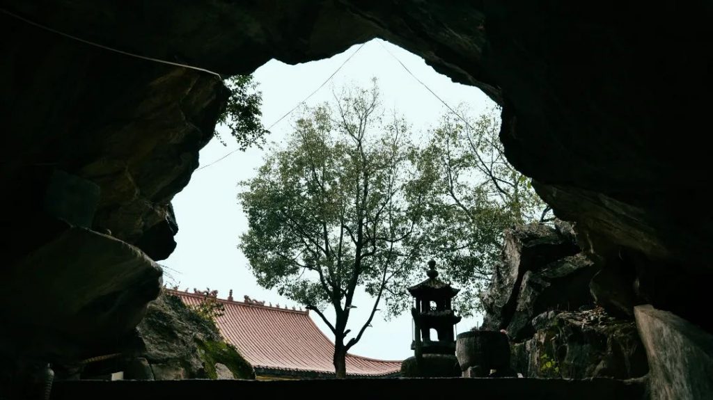 观音洞是个小庙,只有大雄宝殿和一处寮房建筑,以及一个天然山洞。但是说到观音洞的地理位置,着实奇特。