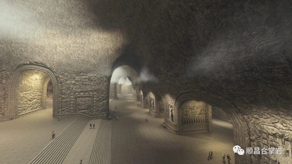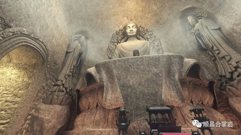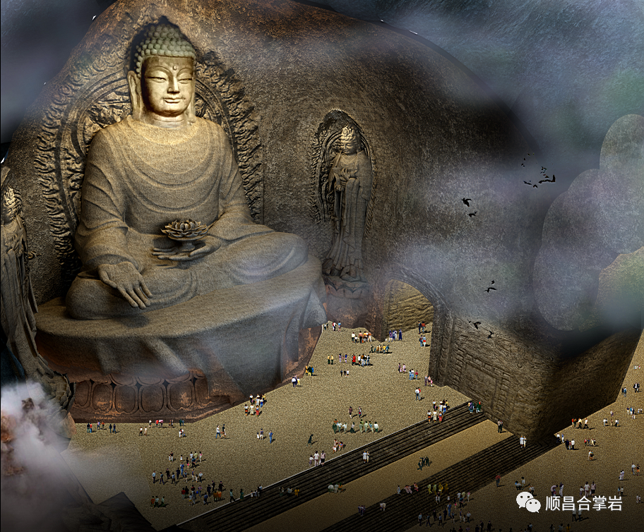 所以,东三大佛石窟采用“一窟三佛六菩萨”同窟的方案,也就是说:一个巨型石窟内有三尊百米大佛和六尊菩萨雕像同窟。