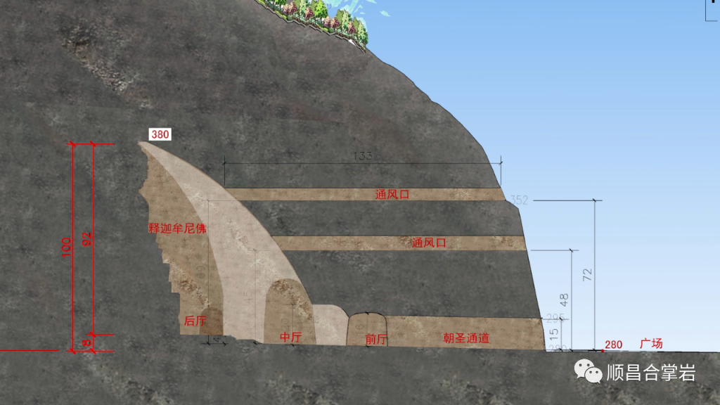 东三大佛石窟工程建设方案刚提出,我们就从选址、测量、勘察、稳定性评价、设计参数优化、设计方案优化、设计模型模拟、施工图设计分类到施工组织设计,经过一系列技术手段和科学分析,几易其稿,最后才完整提出东三大佛总体设计方案。