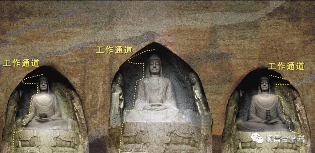 考虑到石窟使用、保护、管理的具体问题,三尊大佛与六尊菩萨都设计了工作通道。