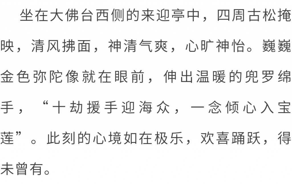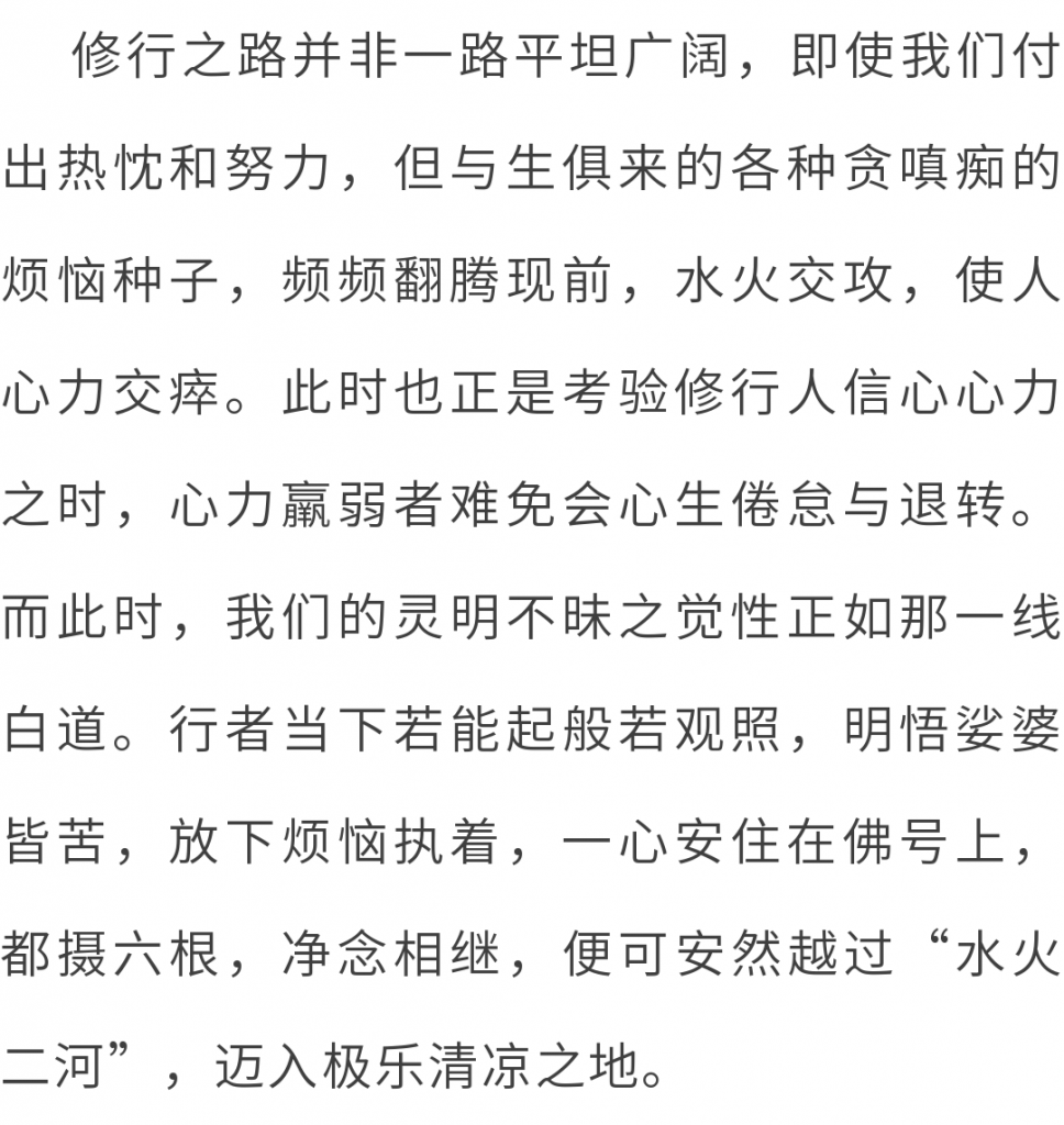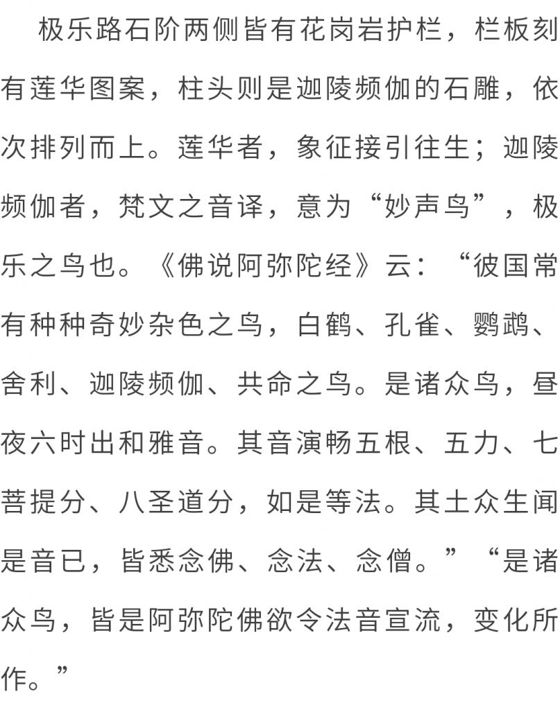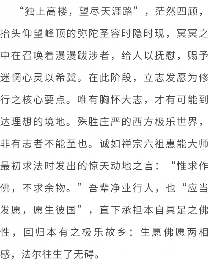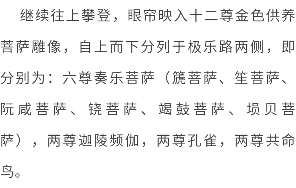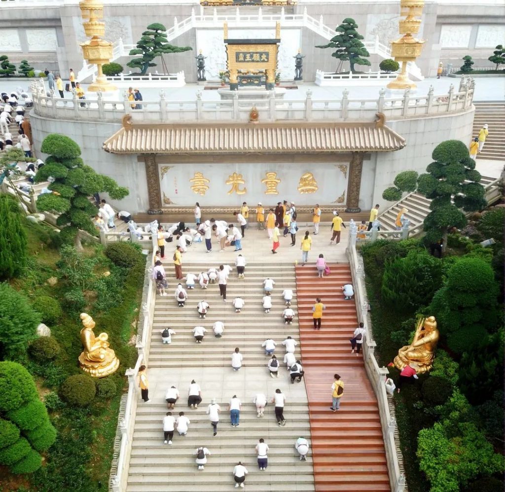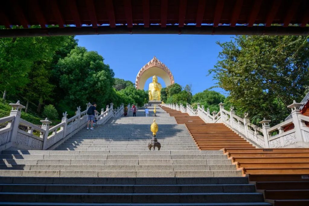 虔礼中轴线,诚登极乐路;拳拳佛子心,漫漫修行旅。修行如登山进阶,需从低处,一步一步、一门心思、全身投入,路途中更需不畏艰险、矢志不渝,方可登上妙高峰顶。《西游记》讲唐僧上西天取经要经历九九八十一难,可见成佛不是一件容易的事情,需要克服身心上的各种障碍和烦恼,战胜一路上的“妖魔鬼怪”,最后才能取得真经、修成正果。