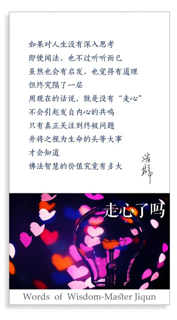 走心了吗 静瑛 • 2022年12月6日 下午6:03 • 八点僧音 来源:济群法师 时间:2022-12-04 本网站属于非赢利性网站,转载的文章遵循原作者的版权声明,如有版权异议,请联系值班编辑予以删除。 联系方式:0591-83056739-818 18950442781 赞 (0) 静瑛 0 0 生成海报 体光老和尚:僧人衣食住行,要比人民差一点,才能安心办道 上一篇 2022年12月6日 下午5:54 【印光法师答念佛600问】 | 9、往生极乐世界的人怎样出生? 下一篇 2022年12月6日 下午6:13 相关推荐 八点僧音 界诠法师 : 学佛一事,有很多的在家众,其实未能真正了解佛法义趣 000 三三两两 2024年4月8日 八点僧音 妙莲老和尚:想破除习气!得按这几个方法来! 000 编辑:庄雅婷 2025年9月22日 八点僧音 念佛不得利益,应该怎样念才好? 000 三三两两 2025年7月7日 八点僧音 虚云老和尚:做活死人 ! 000 三三两两 2025年2月25日 八点僧音 原佛·观察|净慧长老:戒从僧受 法从僧得——佛法没有传承,学法就接不上法流,就得不到加持。 000 smy 2023年5月16日 八点僧音 大愿法师:开启智慧,解决人生的四大根本问题 000 三三两两 2024年4月2日 八点僧音 虚云老和尚开示静坐法要:才觉得有些定明澄澈之境,便生心动念而执著之,宜其不能…… 000 三三两两 2024年4月1日 八点僧音 你真的理解“随缘”吗? 000 三三两两 2024年12月3日 八点僧音 本焕老和尚谈修行 000 三三两两 2025年6月10日 八点僧音 梦参老和尚:1天10部《地藏经》,1万地藏圣号,带来的奇迹 300 编辑:庄雅婷 2024年6月10日 发表回复 您的邮箱地址不会被公开。 必填项已用 * 标注*昵称: *邮箱: 网址: 记住昵称、邮箱和网址,下次评论免输入 提交