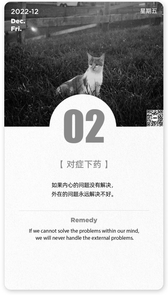 日签 | 对症下药 静瑛 • 2022年12月8日 上午8:02 • 八点僧音 来源:一念慢生活 时间: 2022-12-02 本网站属于非赢利性网站,转载的文章遵循原作者的版权声明,如有版权异议,请联系值班编辑予以删除。 联系方式:0591-83056739-818 18950442781 赞 (0) 静瑛 0 0 生成海报 不要胡编捏造所谓的 “佛说” ! 不要把祖师大德的境界当成自己的境界 上一篇 2022年12月8日 上午7:58 日签 | 保持正念 下一篇 2022年12月8日 上午8:04 相关推荐 八点僧音 妙莲老和尚:举头三尺有神明!连你心念一动佛也知道,这样你还敢胆大随便地胡思乱想吗? 000 三三两两 2024年9月4日 八点僧音 忏云老和尚:中年之后这种事情一违犯,好身体马上就死或引出别的病,就是青年也扛不了。 000 三三两两 2025年10月11日 八点僧音 与人相处要管住嘴,才不会惹祸上身 100 三三两两 2024年12月5日 八点僧音 【莲邦诗选】无边苦海,化作津梁 000 静瑛 2023年1月5日 八点僧音 印光大师 :绮语的果报非常严重! 000 三三两两 2025年2月18日 八点僧音 界诠法师:我们得人身,最起码的要修三皈五戒乃至十善 000 编辑:庄雅婷 2024年5月15日 八点僧音 济群法师:我们已别无选择? 000 三三两两 2025年10月9日 八点僧音 净慧老和尚:怎么样才能使这个心就是佛呢? 000 编辑 志斌 2022年11月27日 八点僧音 忏云长老:业转了,肉就不香了! 000 三三两两 2024年5月10日 八点僧音 八万四千法门,如何选择适合自己的法门? 000 smy 2023年4月5日 发表回复 您的邮箱地址不会被公开。 必填项已用 * 标注*昵称: *邮箱: 网址: 记住昵称、邮箱和网址,下次评论免输入 提交