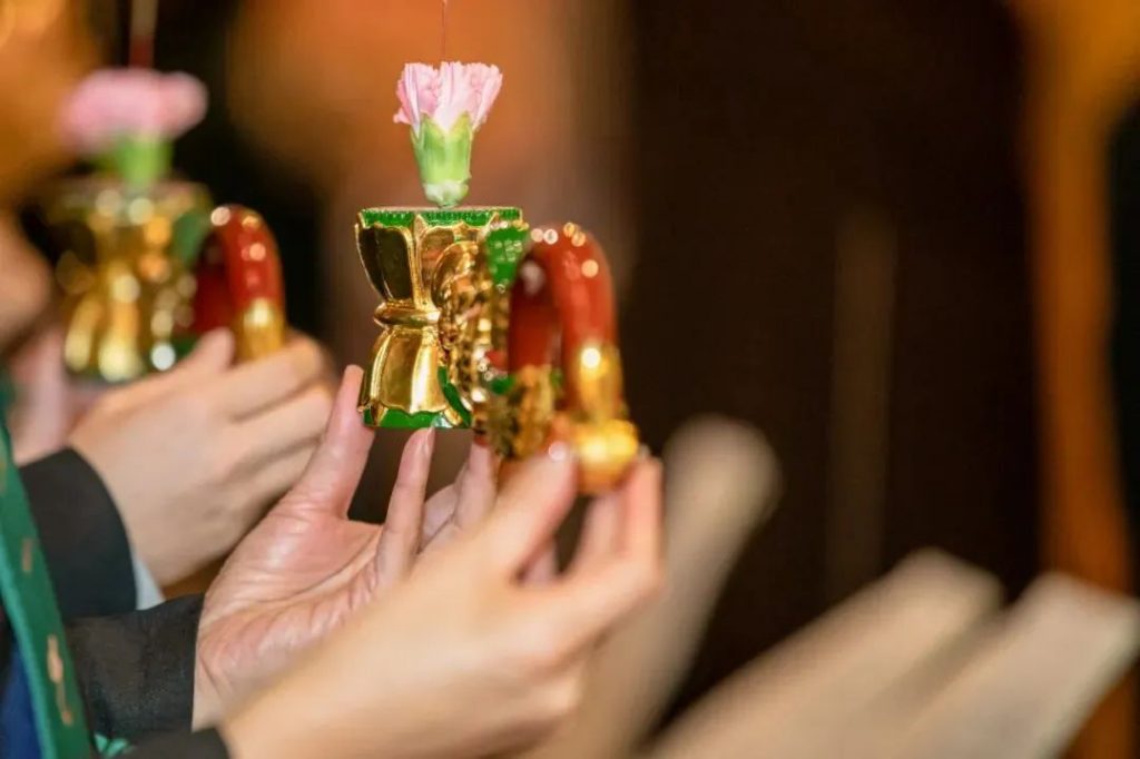 如果是上环香,就要以点燃之处向佛,两手像持长香的方式一样,举香时,只要口中默念:“供养十方三世三宝。”愿此香华云,直达三宝所,恳求大慈悲,施与众生乐。”即可。
