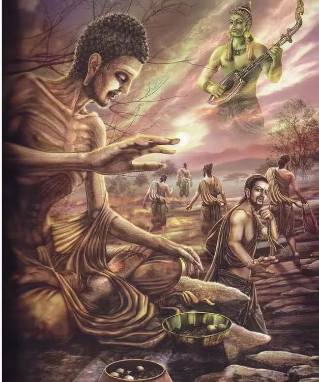 于是,言出身随,六年之中修习禅定,身心清净,日食一麻一麦;威仪进止,皆与道合。无论严冬酷暑、暴雨狂风,太子总是巍然端坐,不动如山;无论遇到任何危难境界现前,太子始终保持诸根不乱,心不恐怖,目不邪视;树上鹊鸟筑巢,抱卵哺雏,粪污其身,太子亦不嫌弃。唯一心念道,所谓行人所不能行,忍人所不能忍。天龙八部见菩萨如是勤苦精进,功勋道德巍巍,无不欢喜赞叹,而来供养奉事。因此,太子六年修习苦行,感化了无数天人。