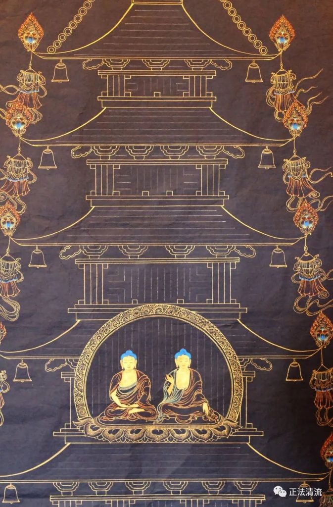 什么是多宝佛塔呢?就是在法华会上释迦牟尼佛讲《法华经》时,地上涌出的多宝佛塔,塔中有一尊多宝佛。《法华经》第十一品为“见宝塔品”已经提到了。这里“见”是通假字,读作“现”,出现的意思。为什么要涌现多宝佛塔呢?这说明讲《法华经》是稀有难得的,是很殊胜、最究竟的法门,道理是真实不虚的。这位多宝佛是在庄严劫以前就是已经证了果的古佛,曾誓愿为十方世界宣说《法华经》的人现宝塔作见证。