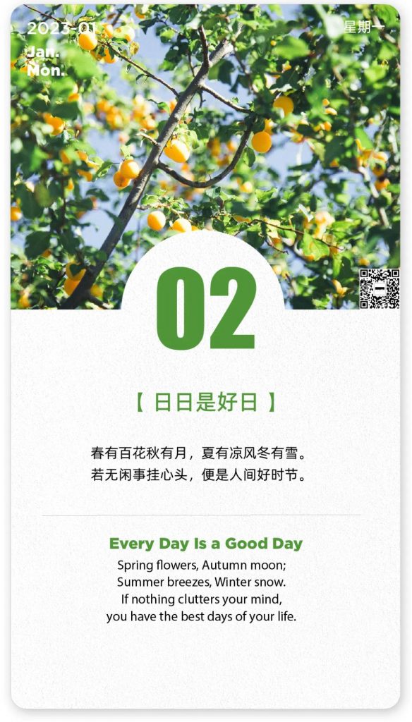 日签 | 日日是好日 静瑛 • 2023年1月2日 下午8:35 • 八点僧音 来源:一念慢生活 时间:2023-01-02 本网站属于非赢利性网站,转载的文章遵循原作者的版权声明,如有版权异议,请联系值班编辑予以删除。 联系方式:0591-83056739-818 18950442781 赞 (0) 静瑛 0 0 生成海报 本焕老和尚:小孩天天托梦给来果老和尚要求开缸贴金 上一篇 2023年1月2日 下午8:33 日签 | 一切都是最好的安排 下一篇 2023年1月2日 下午8:37 相关推荐 八点僧音 绍云老和尚:用功出现了清净境界 , 身心出现无尽轻安的时候 , 千万不能得少为足 200 编辑:庄雅婷 2023年9月12日 八点僧音 梦参老和尚:念经时尽打妄想、打瞌睡,你要这样罚你自己 000 三三两两 2024年4月11日 八点僧音 大安法师 :不要老是讲自己“护法”和附体如何 000 三三两两 2025年8月11日 八点僧音 守心不随境,慎言免祸根 000 三三两两 2025年7月1日 八点僧音 佛源老和尚:戒是了生死的基础,禅定的第一条守规,没有戒想要入定是不可能的 000 三三两两 2025年6月9日 八点僧音 惜福不等于吃苦,付出也不是为了感动他人 000 三三两两 2024年7月9日 八点僧音 梦参老和尚:家人吃肉,你吃素,怎么办? 000 三三两两 2025年10月5日 八点僧音 梦参老和尚:学佛的人,买东西被骗了,怎么办? 000 三三两两 2025年7月22日 八点僧音 梦参老和尚:拜佛念经,那是打仗,你理解吗? 000 smy 2023年4月9日 八点僧音 济群法师:八风吹不到的地方 000 三三两两 2024年9月30日 发表回复 您的邮箱地址不会被公开。 必填项已用 * 标注*昵称: *邮箱: 网址: 记住昵称、邮箱和网址,下次评论免输入 提交