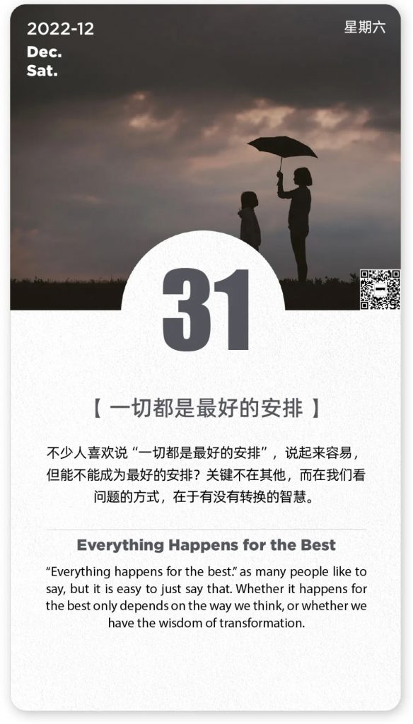 日签 | 一切都是最好的安排 静瑛 • 2023年1月2日 下午8:37 • 八点僧音 来源:一念慢生活 时间:2022-12-31 本网站属于非赢利性网站,转载的文章遵循原作者的版权声明,如有版权异议,请联系值班编辑予以删除。 联系方式:0591-83056739-818 18950442781 赞 (0) 静瑛 0 0 生成海报 日签 | 日日是好日 上一篇 2023年1月2日 下午8:35 中国佛教协会发起启动“法显大愿慈善计划” 下一篇 2023年1月2日 下午8:44 相关推荐 八点僧音 做好这六点,越活越自在! 000 三三两两 2024年7月18日 八点僧音 济群法师:两个提醒,让修行不走弯路 000 三三两两 2024年11月4日 八点僧音 佛法是幸福生活的方法 000 三三两两 2025年7月10日 八点僧音 【不輕寮】明海大和尚:禅堂中的茶道 000 编辑 志斌 2023年3月2日 八点僧音 莲音历 | 当今末法,现是五浊恶世 000 静瑛 2023年1月2日 八点僧音 大安法师:有同修说送往生不能哭泣,可念佛时这眼泪自然流出。该如何抑制? 000 三三两两 2024年7月8日 八点僧音 要束缚还是自由,选择很重要 000 三三两两 2025年10月28日 八点僧音 梦参老和尚:把供养摆那里就走了,这样功德很小 100 三三两两 2024年5月6日 八点僧音 济群法师:《金刚经》有哪三多? 000 三三两两 2024年1月9日 八点僧音 佛源老和尚敲警钟:戒律是律自己的,不要用它量旁人! 000 三三两两 2025年9月1日 发表回复 您的邮箱地址不会被公开。 必填项已用 * 标注*昵称: *邮箱: 网址: 记住昵称、邮箱和网址,下次评论免输入 提交