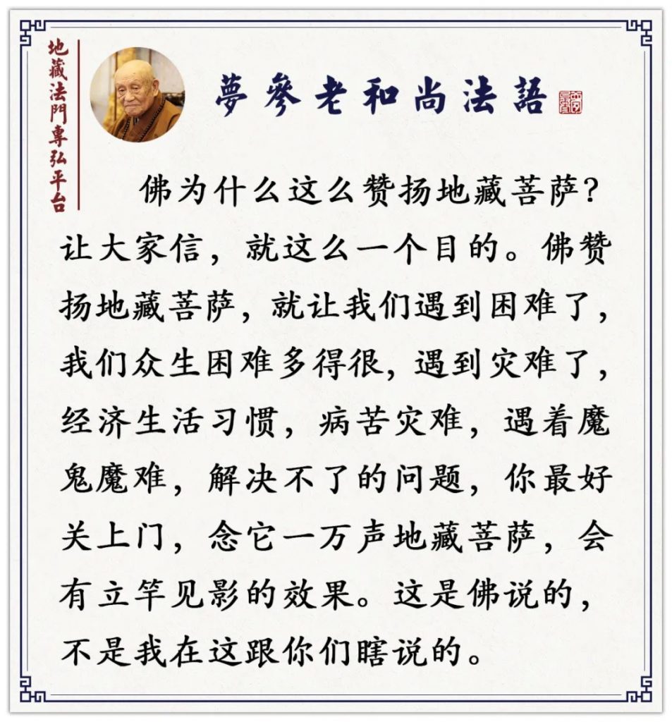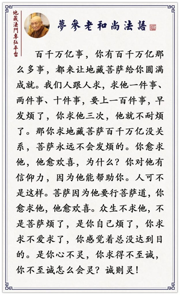至于经上说你念地藏菩萨圣号,念到什么程度就得到什么感应,如果照经上所说的去做,确实能得到感应、能得到加持,也就能解决你心里头解决不了的问题。