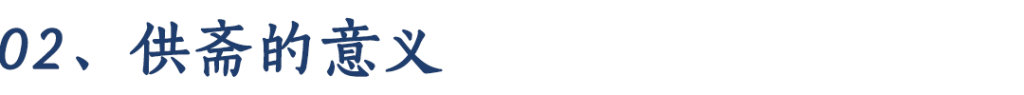 供斋是培福修慧的一种重要的修行方式,通过外在的这种布施供养,帮助我们除去内心的悭贪。而佛、法二宝赖僧宝扶持,若无僧宝,佛法二宝无人流布,所以护持僧宝修行,助其弘法利生,将佛法遍布世间,具有很大的功德。出家人一心用功办道,所以最重要的护持就是让他们没有物资的缺乏。