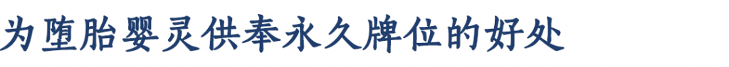 为“堕胎婴灵、已故亡者”供奉牌位后,堕胎婴灵、亡者才能进入寺院听经闻法,才能在佛前修行,忏悔宿业,消除其自身累世的业障,接受佛菩萨教化,化解心中怨恨,积累福德,争取早日脱离六道轮回之苦,往生极乐世界。