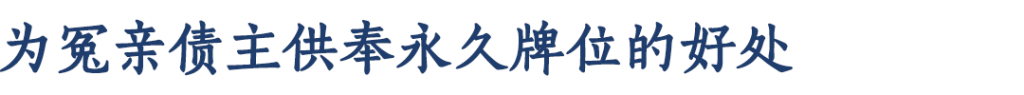 为冤亲债主供奉永久牌位相当于为他们办理入道场的通行证。