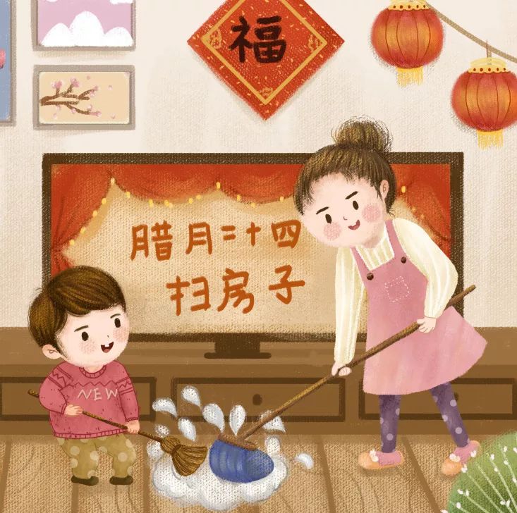 在民俗中,“小年”是家家户户“除尘”的日子。扫尘就是年终大扫除,每逢春节来临家家户户都要清洗各种器具,洒扫庭院,打扫房间,用干净、整洁、亮堂来迎接新年的到来。