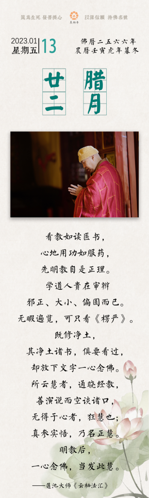 莲音历 | 看教如读医书,心地用功如服药 静瑛 • 2023年1月13日 下午7:40 • 八点僧音 来源:东林寺文宣部 江西庐山东林寺 时间:2023-01-13 本网站属于非赢利性网站,转载的文章遵循原作者的版权声明,如有版权异议,请联系值班编辑予以删除。 联系方式:0591-83056739-818 18950442781 赞 (0) 静瑛 0 0 生成海报 看看,你心里有什么是需要放下的 上一篇 2023年1月13日 下午7:37 六度万行,皆可为往生助缘 下一篇 2023年1月13日 下午7:45 相关推荐 八点僧音 印光大师:为什么说佛法包括所有世间经世之道?三世因果,生死轮回何以深则见深,浅则见浅? 000 编辑:庄雅婷 2024年12月8日 八点僧音 三参法师:挖掘你的可能性 000 三三两两 2024年3月5日 八点僧音 日常生活能这样“善用其心”,你所受的效益会很快的(梦参老和尚) 000 三三两两 2024年4月1日 八点僧音 济群法师:让我们一起,重新长大 000 三三两两 2025年2月5日 八点僧音 虚云老和尚:其实神通一层,不但天魔外道有之,即在鬼畜俱有…… 200 三三两两 2024年3月18日 八点僧音 不令六根流于六尘 | 虚云老和尚 100 smy 2023年6月24日 八点僧音 心烦时如何调伏心态 000 三三两两 2024年12月25日 八点僧音 香板下的祖师:来果老和尚 000 三三两两 2025年6月13日 八点僧音 智者小课堂|你了解烦恼吗? 000 静瑛 2023年1月1日 八点僧音 【印光法师答念佛600问】| 24、远公为什么结莲社念佛求生西方?修行情况如何? 000 静瑛 2022年12月12日 发表回复 您的邮箱地址不会被公开。 必填项已用 * 标注*昵称: *邮箱: 网址: 记住昵称、邮箱和网址,下次评论免输入 提交