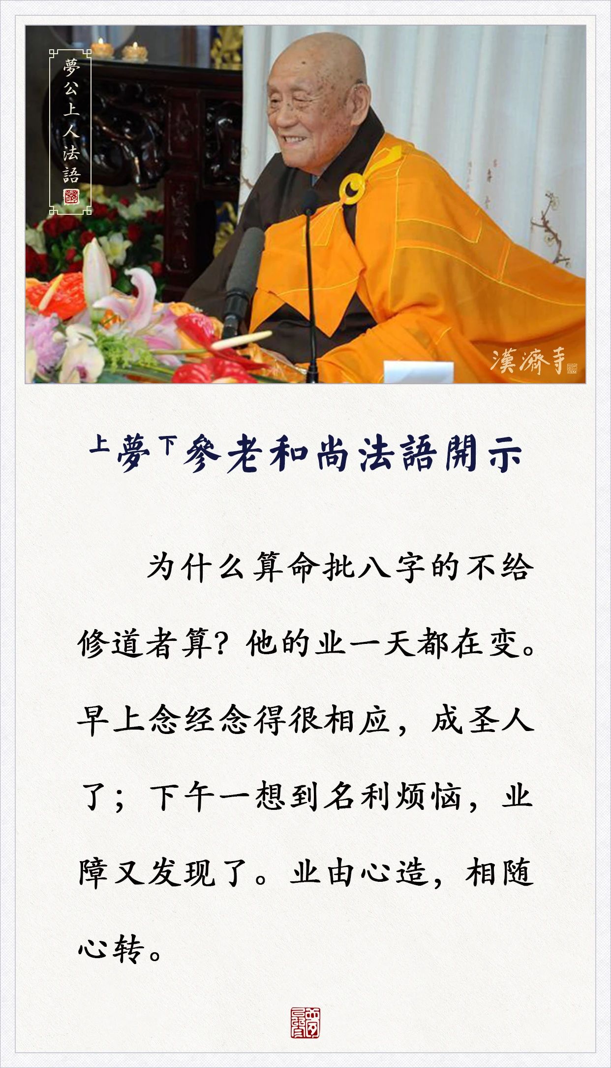 我们要想生极乐世界,你还想算个命、打个卦?《占察经》不同,你要用占察轮,问:“我能生到极乐世界不呢?”你占一下,地藏占察轮说你要想生到极乐世界,还得用功;说你可以能生得到,那你就有把握了,就更加用功了。但是占到这个机会是很少的。 那个占察轮,很少会现到说你能生。但是你要是问你过去从哪一道来的,死后到哪一道去,占察轮会正确答复你。你要是生起恐怖了,怕到了三恶道,你赶紧修。 你不是天天掷吗?天天拜,天天掷,拜到一定层次,三恶轮转了,你就能生了。那个轮跟这个吉凶祸福不一样,常见,断见,我、我所见,我见,全部都包括在邪见里头,远离这些妄执吉凶祸福。吉凶祸福不是定论,随时可以转变的。 特别是三宝弟子,学道者,随时都在转变的。人的相貌随时在变,如果你注意观察这人的相貌,一天当中会变化几次,要是隔几天你去看他,相貌又变了。你看见这人很厌烦,面貌可憎、言语无味,你隔两天再去看他,你会生起欢喜心,那是他有修为。 现在一个人他如果打一个七,念几天佛,念到相应的时候,相貌马上就变。变,不是世间上脸红、或者脸白,或者好看,不是那个。他有一种道德使你感应,使你心欢喜。你看那个老和尚、老喇嘛,样子很丑、很脏,你见着就生起恭敬心,对他特别恭敬,这就是他的德。