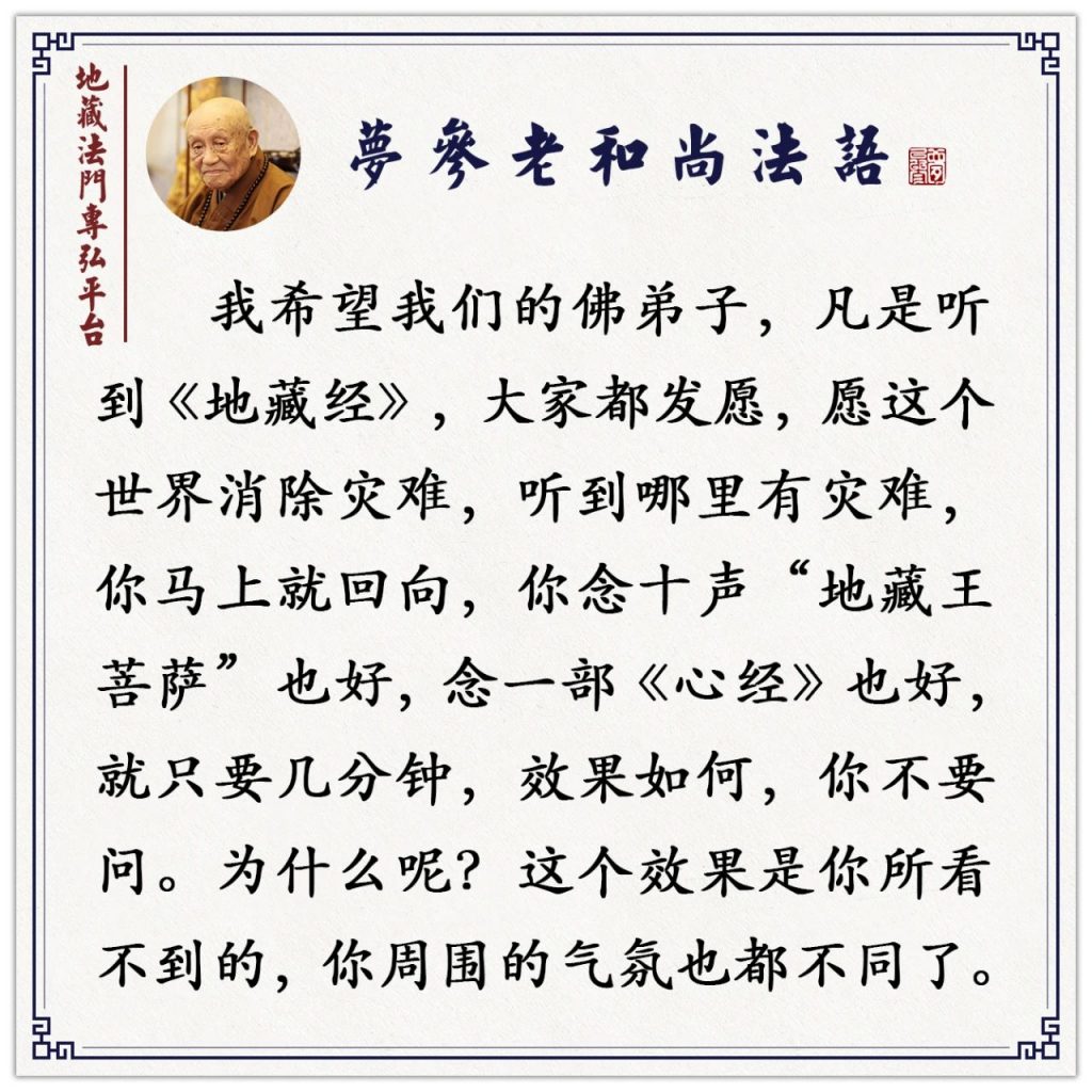 我们学习任何经典,不论什么经典,像我们学《地藏经》就要学地藏菩萨发大愿心。我们虽然在屋子里坐着,心里可是发愿使社会一切众生不受痛苦灾难。现在的灾难很重,什么原因?自己造的。现在众生心、造业心非常猛利,非常技巧,现在人的知识很聪明,害人的手段更聪明,害人的方法也很微妙,要给他们消灾,随时随地想念众生。