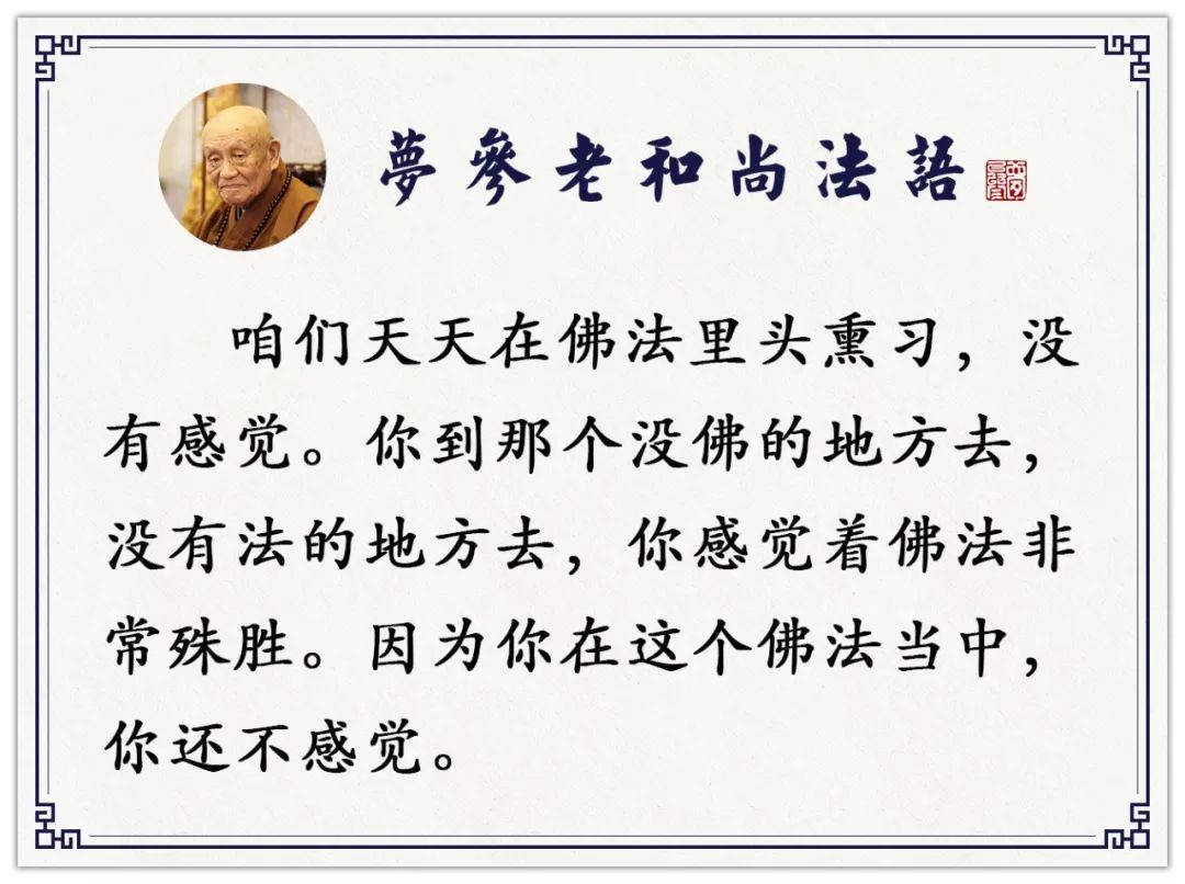 梦参老和尚大家看我们师父们,从早晨念经干什么?报四重恩、报父母恩。父母生我们、养我们,完了我们出家了,对他们一点贡献没有呀,那我们就求菩萨加持他们。我们念经报父母恩、报施主恩。还有我们吃的饮食、穿的衣服都是施主给的,所以念经的时候先给人家回向。 有道友让我讲讲因果,这就是因果。出家是因,成佛是果。在这个过程当中,从因到果,中间夹杂着无数的因果。这个呢,大家必须通过学习才能清楚。 关于这个问题,我从美国、台湾,在这个地球上走了很多地方。我看看佛弟子,凡是信佛的人,不论多大的灾害,多数佛弟子都是安全的。 印度尼西亚那次海啸,我就通过印尼的道友,帮我调查调查,这里多少信佛的受了灾难?基本上没有。凡是社会上大的灾难出来之后,佛弟子没有,有也很少。 我刚才跟大家说六十多亿人口,有十亿多人口没有饭吃的,吃不饱,但是这里面一个信佛的没有,因为那个地区没有佛法。现在开始有了,台湾有个慧礼法师,他就到那去弘扬佛法,也收了那地方的人出家。 但凡有佛法的地方,要比没有佛法的地方灾难小得多。每次有一个大灾难,我就找人去研究,有学佛弟子没有?还有佛弟子虽然信佛了,他做不做、听不听佛的教导?他虽然做佛弟子,他口里虽然信佛,但他跟佛所说的话相违背。