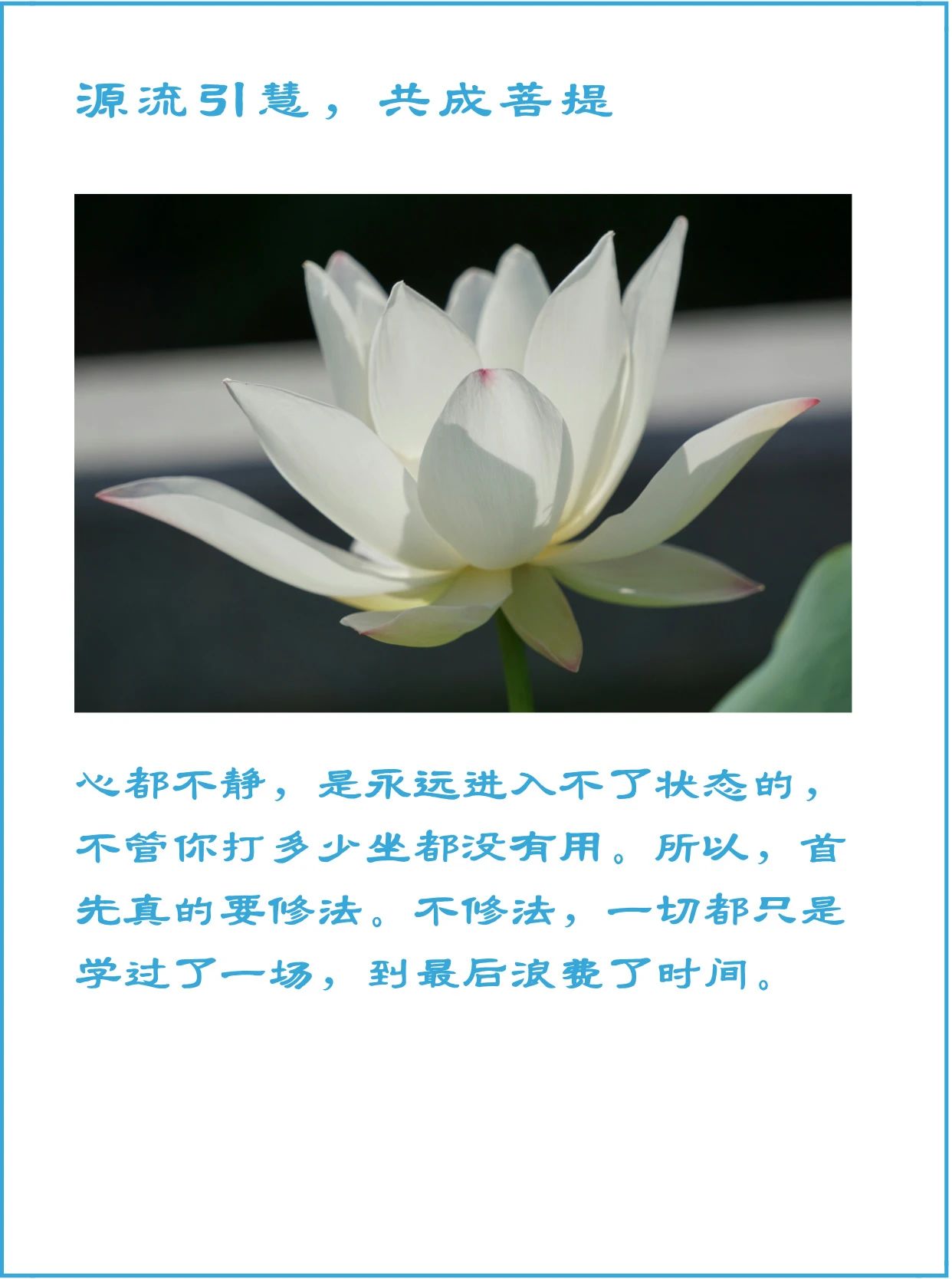 心都不静,是永远进入不了状态的,不管你打多少坐都没有用。所以,首先真的要修法。不修法,一切都只是学过了一场,到最后浪费了时间。