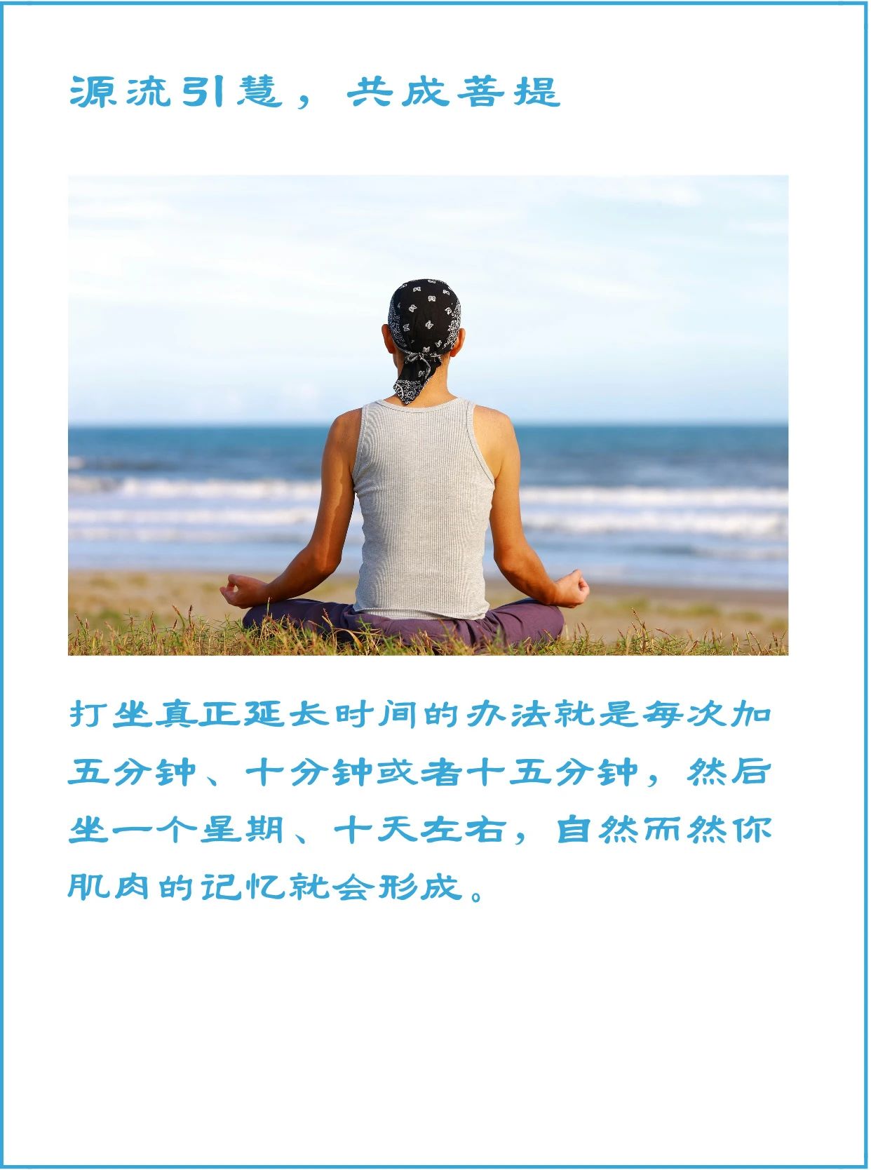 打坐真正延长时间的办法就是每次加五分钟、十分钟或者十五分钟,然后坐一个星期、十天左右,自然而然你肌肉的记忆就会形成。比如说刚开始坐四十分钟,你加了十分钟,到五十分钟。刚开始四十分钟就已经疼了、不舒服了,坚持十多天以后就变成五十分钟才开始疼了。这个时候你再加十分钟,这样慢慢加才行。