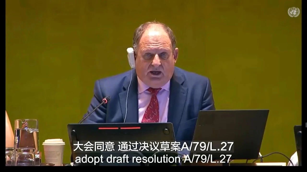 此项联合国决议草案编号为A/79/L.27,由安道尔、印度、墨西哥、尼泊尔、斯里兰卡和列支敦士登为核心成员共同发起,最终得到了包括联合国常任理事国中国在内的71个共同提案国的支持。
