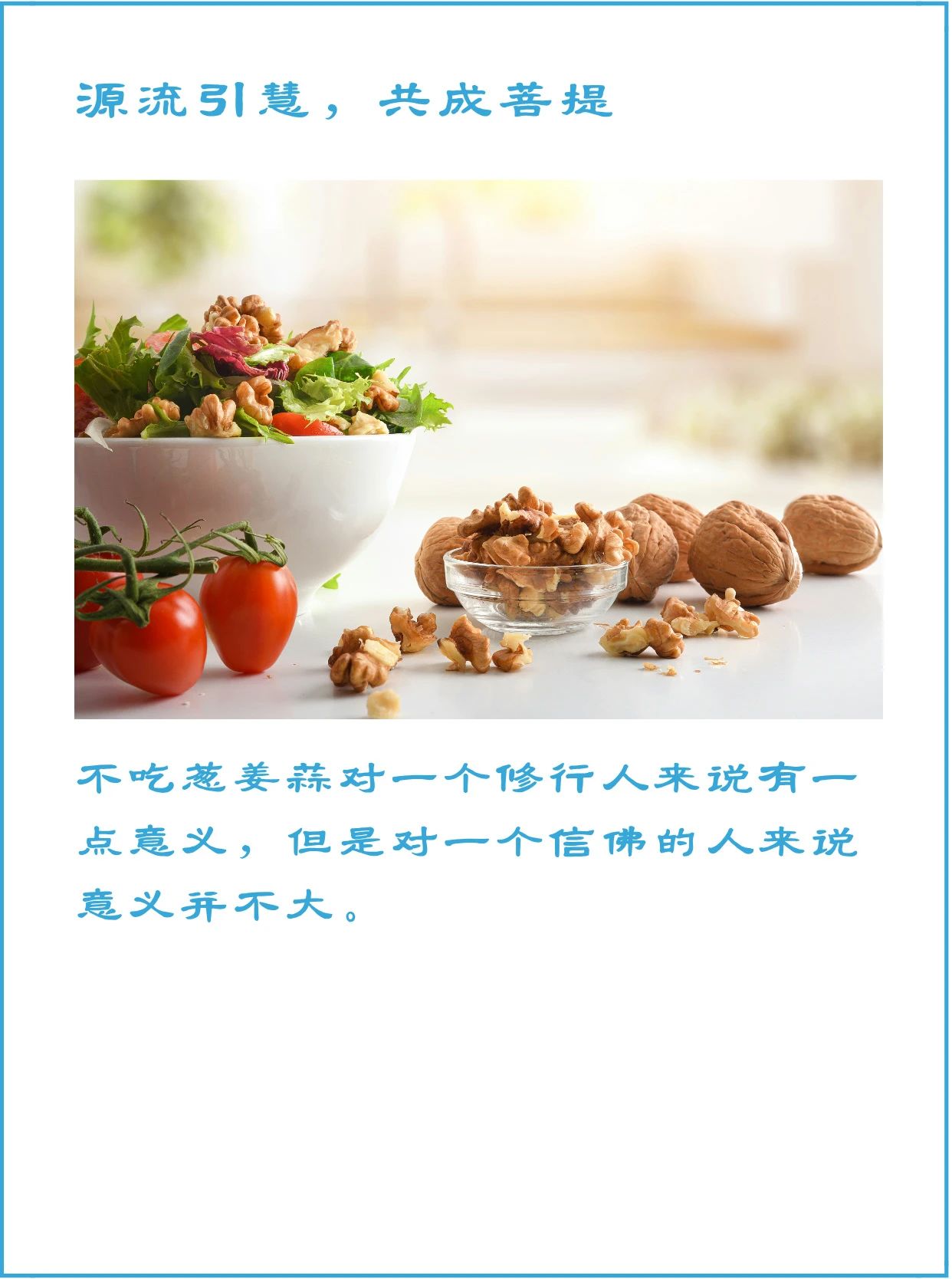 当初佛陀讲不吃葱姜蒜、不吃五辛,是因为那个时候的人要修习禅定。在修习禅定的过程中,吃了这种刺激性、挥发性的东西,会激发欲望或者导致情绪的波动,不能够很好地入定。如果你只是一个佛教的信众,你并不是一个修行人,你也并没有修法、修禅定,那么葱姜蒜对你来说就不是一个绝对的问题了。