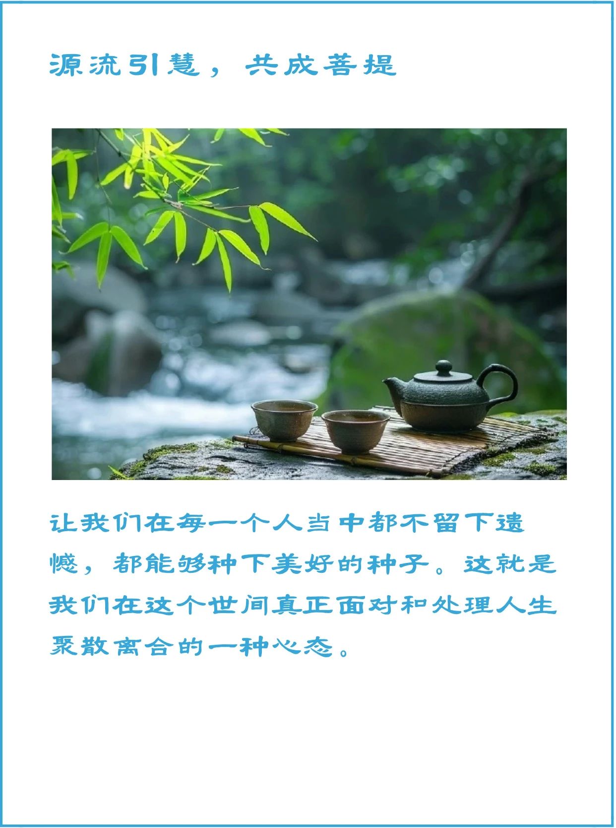 在这个过程当中,我们唯一能够做的是什么呢?就是珍惜每一个当下。在每一个当下,我们能够善待好身边相识相知相聚的每一个人,让我们在每一个人当中都不留下遗憾,都能够种下美好的种子。这就是我们在这个世间真正面对和处理人生聚散离合的一种心态。