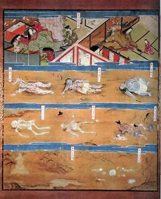 所以,皇帝死后,她出家做了比丘尼,临终前为了了业,交代弟子要让自己的尸体曝尸荒野。随着大家目睹了这位昔日美艳的皇后尸体腐烂的过程,由她姿色所造的业就对消了。整个过程还让画家记录了下来,成为遗留下来的宝贵文化遗产,现在收藏在日本的一座寺院里。